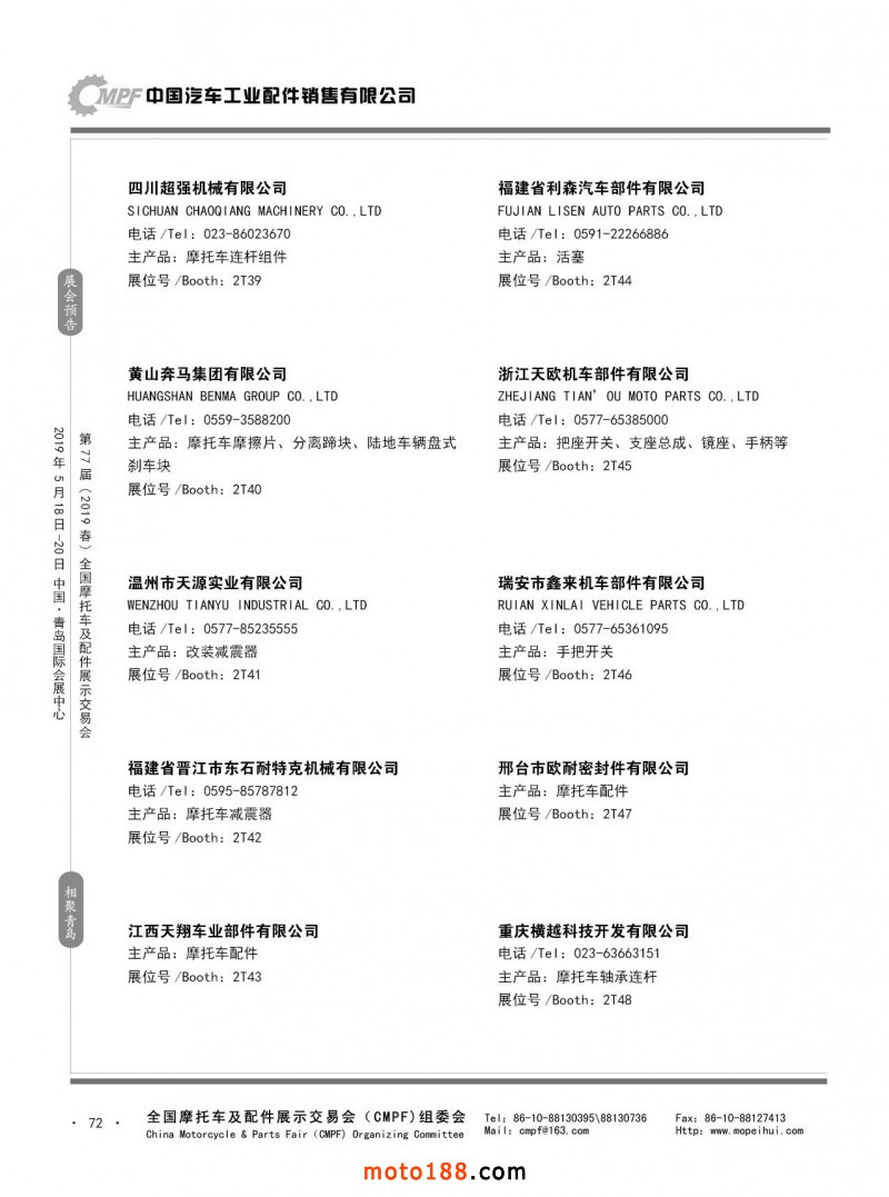 内72 第76届(2018秋)全国摩托车及配件展示交易会-广州站参展企业信息