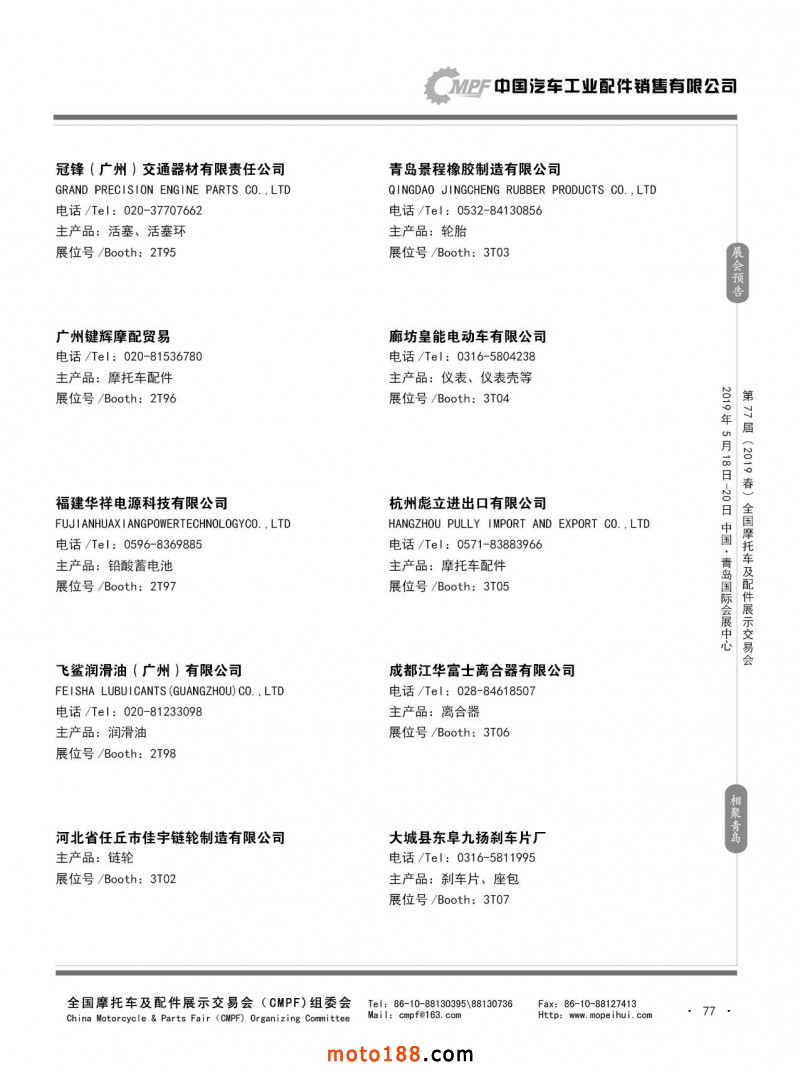 内77 第76届(2018秋)全国摩托车及配件展示交易会-广州站参展企业信息