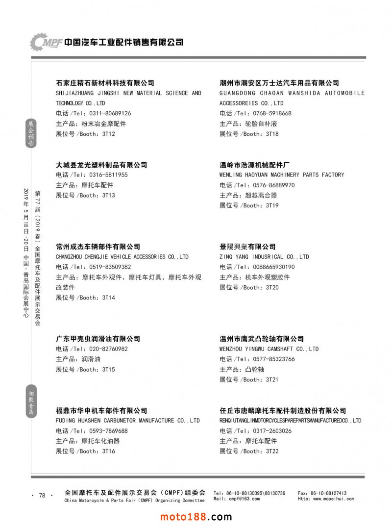 内78 第76届(2018秋)全国摩托车及配件展示交易会-广州站参展企业信息