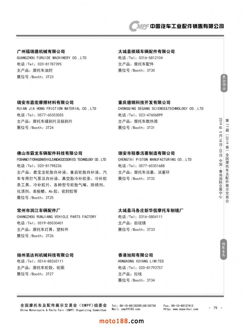 内79 第76届(2018秋)全国摩托车及配件展示交易会-广州站参展企业信息