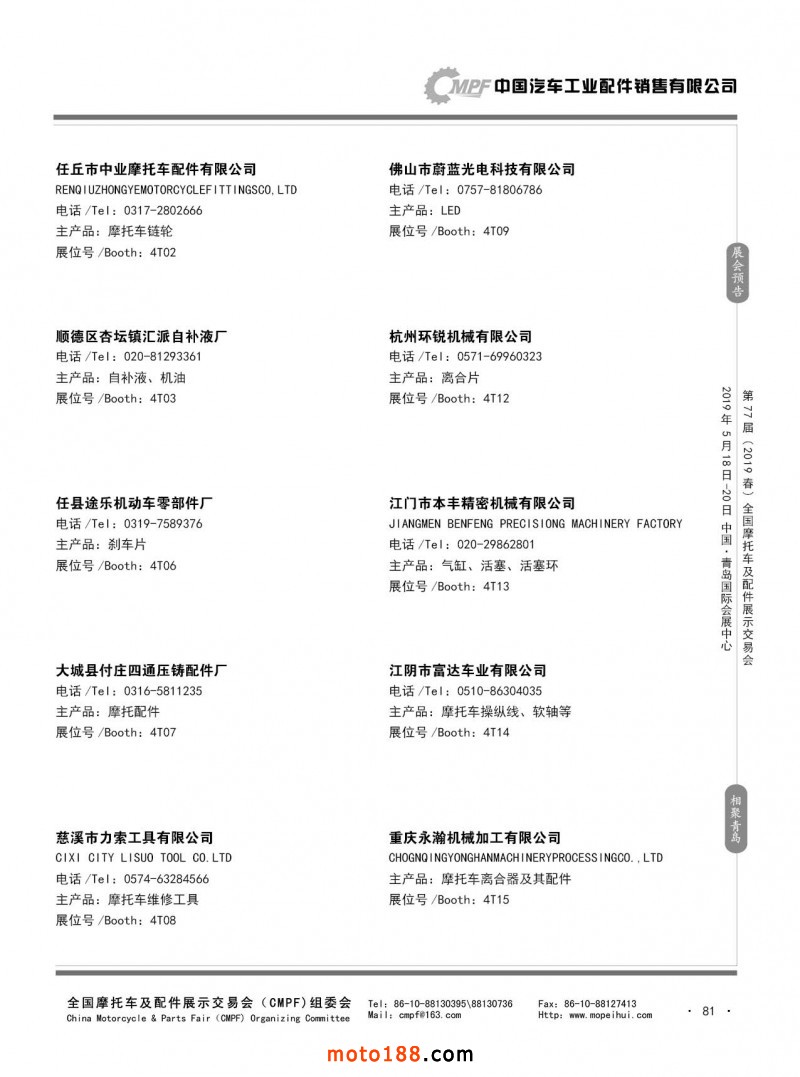 内81 第76届(2018秋)全国摩托车及配件展示交易会-广州站参展企业信息