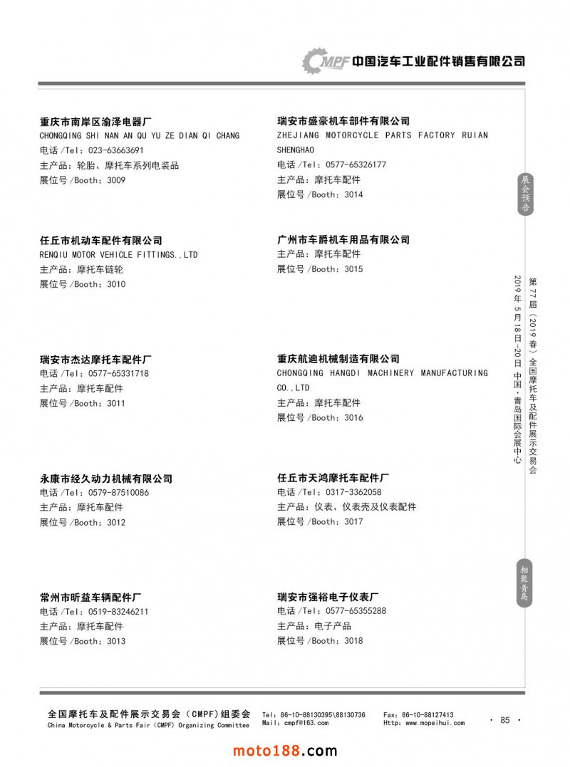 内85 第76届(2018秋)全国摩托车及配件展示交易会-广州站参展企业信息
