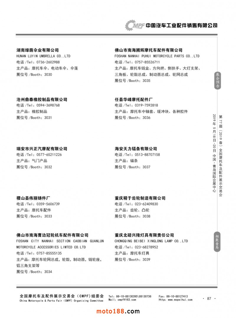内87 第76届(2018秋)全国摩托车及配件展示交易会-广州站参展企业信息