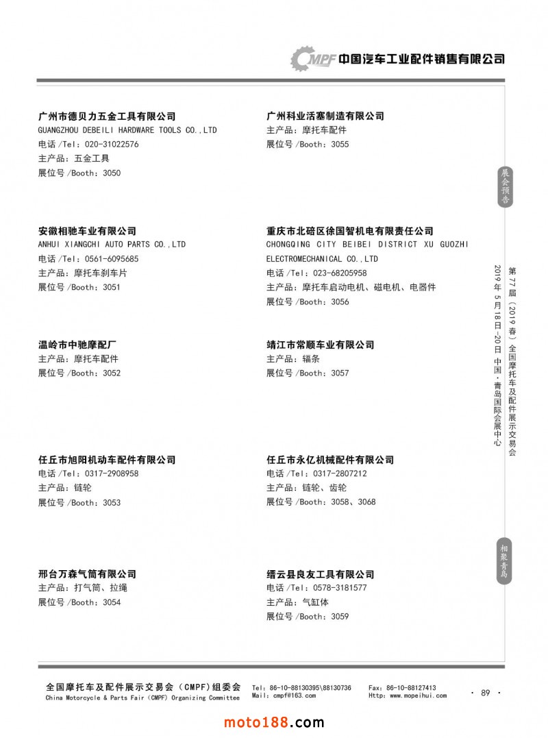 内89 第76届(2018秋)全国摩托车及配件展示交易会-广州站参展企业信息