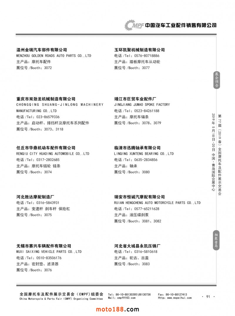 内91 第76届(2018秋)全国摩托车及配件展示交易会-广州站参展企业信息