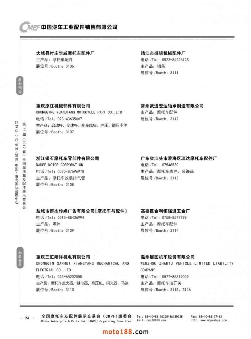 内94 第76届(2018秋)全国摩托车及配件展示交易会-广州站参展企业信息