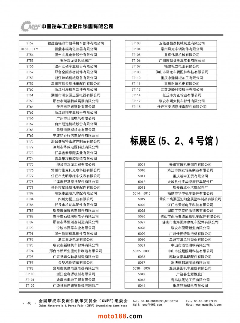内40 第77届(2019春)全国摩托车及配件展示交易会-青岛站参展单位名录