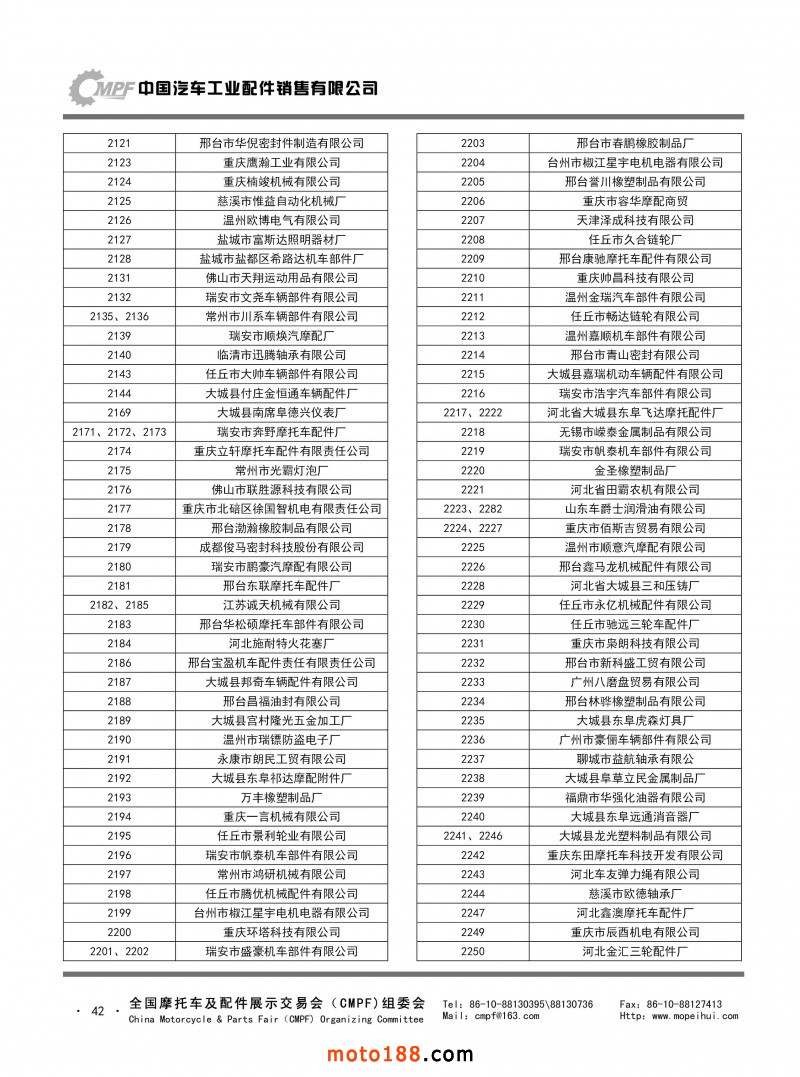 内42 第77届(2019春)全国摩托车及配件展示交易会-青岛站参展单位名录
