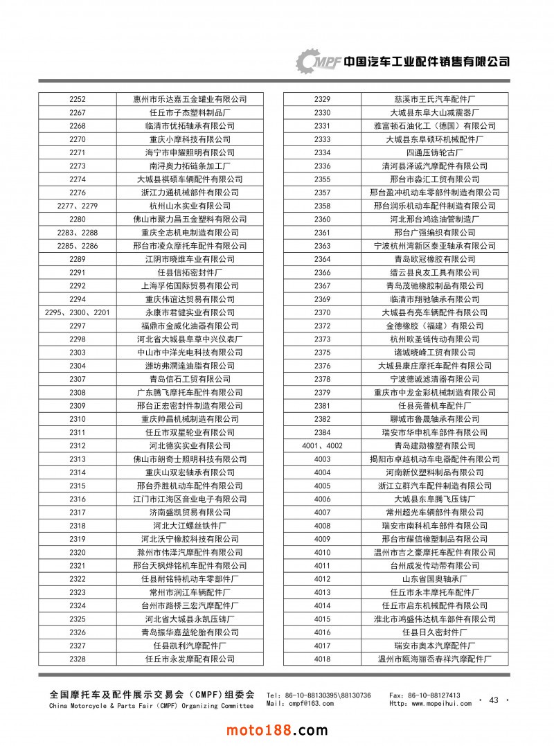 内43 第77届(2019春)全国摩托车及配件展示交易会-青岛站参展单位名录