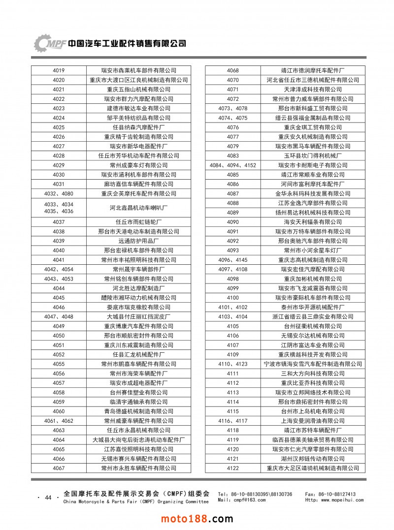 内44 第77届(2019春)全国摩托车及配件展示交易会-青岛站参展单位名录