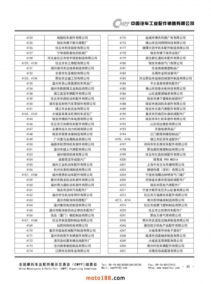 内45 第77届(2019春)全国摩托车及配件展示交易会-青岛站参展单位名录