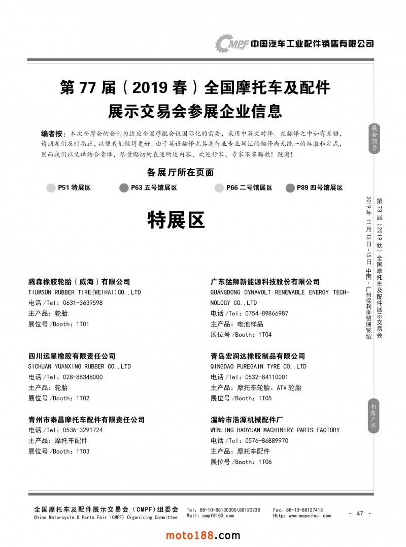 内47 第77届(2019春)全国摩托车及配件展示交易会-青岛站参展企业信息