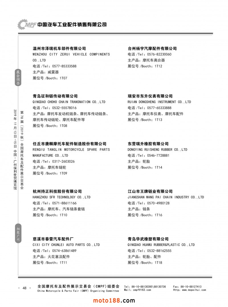 内48 第77届(2019春)全国摩托车及配件展示交易会-青岛站参展企业信息