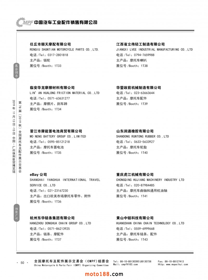 内50 第77届(2019春)全国摩托车及配件展示交易会-青岛站参展企业信息