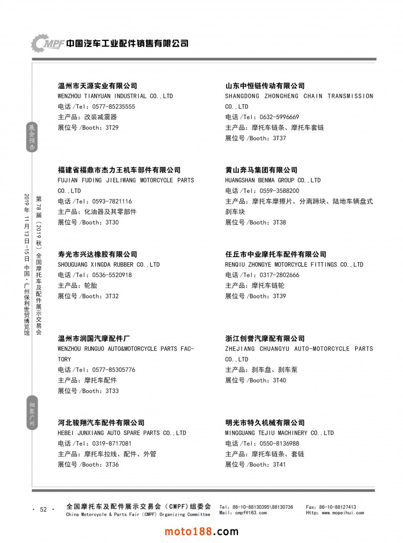 内52 第77届(2019春)全国摩托车及配件展示交易会-青岛站参展企业信息