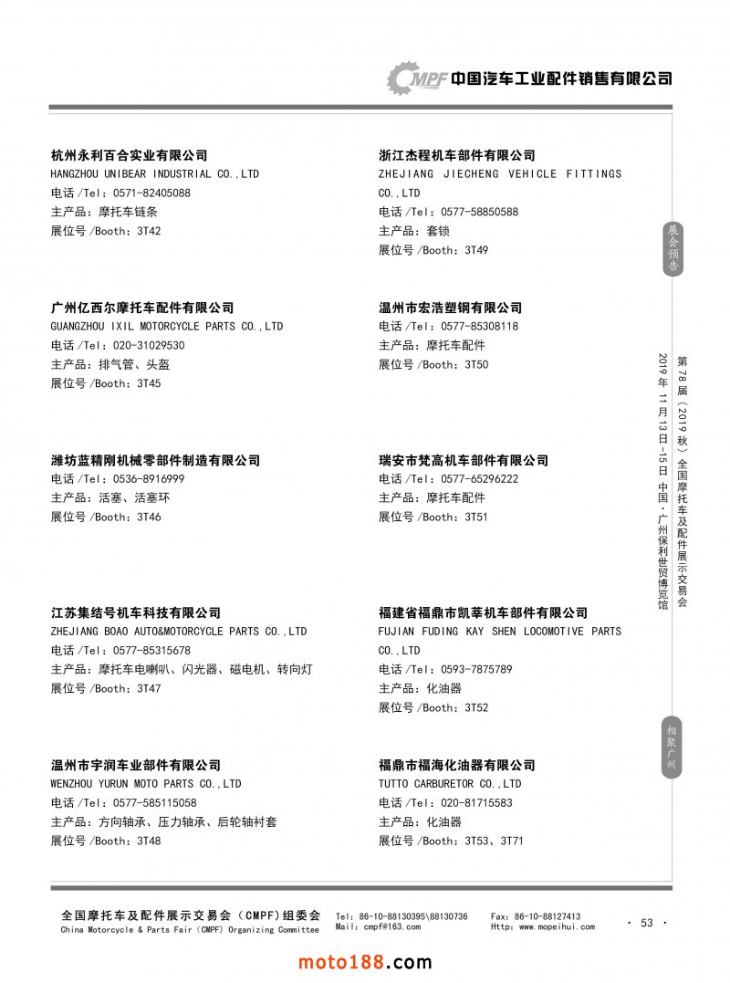 内53 第77届(2019春)全国摩托车及配件展示交易会-青岛站参展企业信息