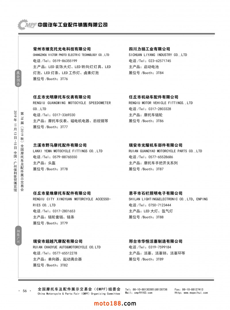 内56 第77届(2019春)全国摩托车及配件展示交易会-青岛站参展企业信息