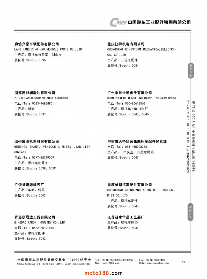 内61 第77届(2019春)全国摩托车及配件展示交易会-青岛站参展企业信息
