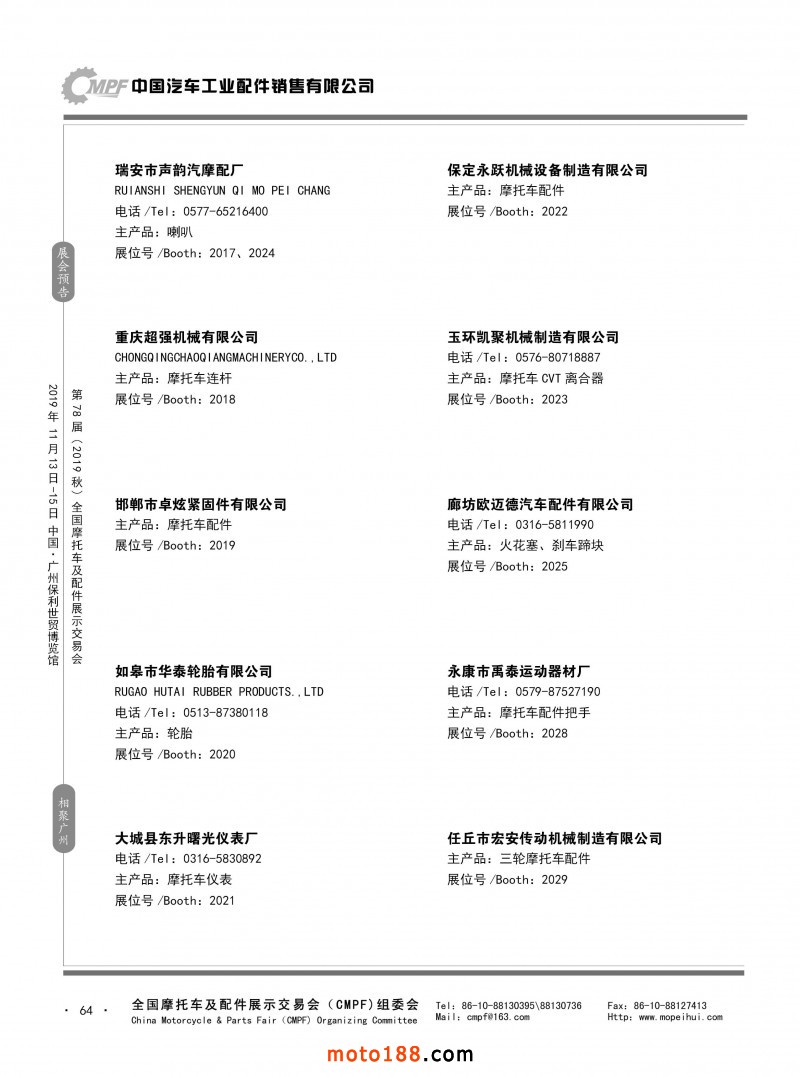 内64 第77届(2019春)全国摩托车及配件展示交易会-青岛站参展企业信息