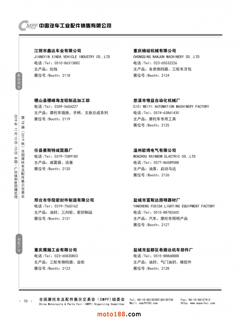 内70 第77届(2019春)全国摩托车及配件展示交易会-青岛站参展企业信息