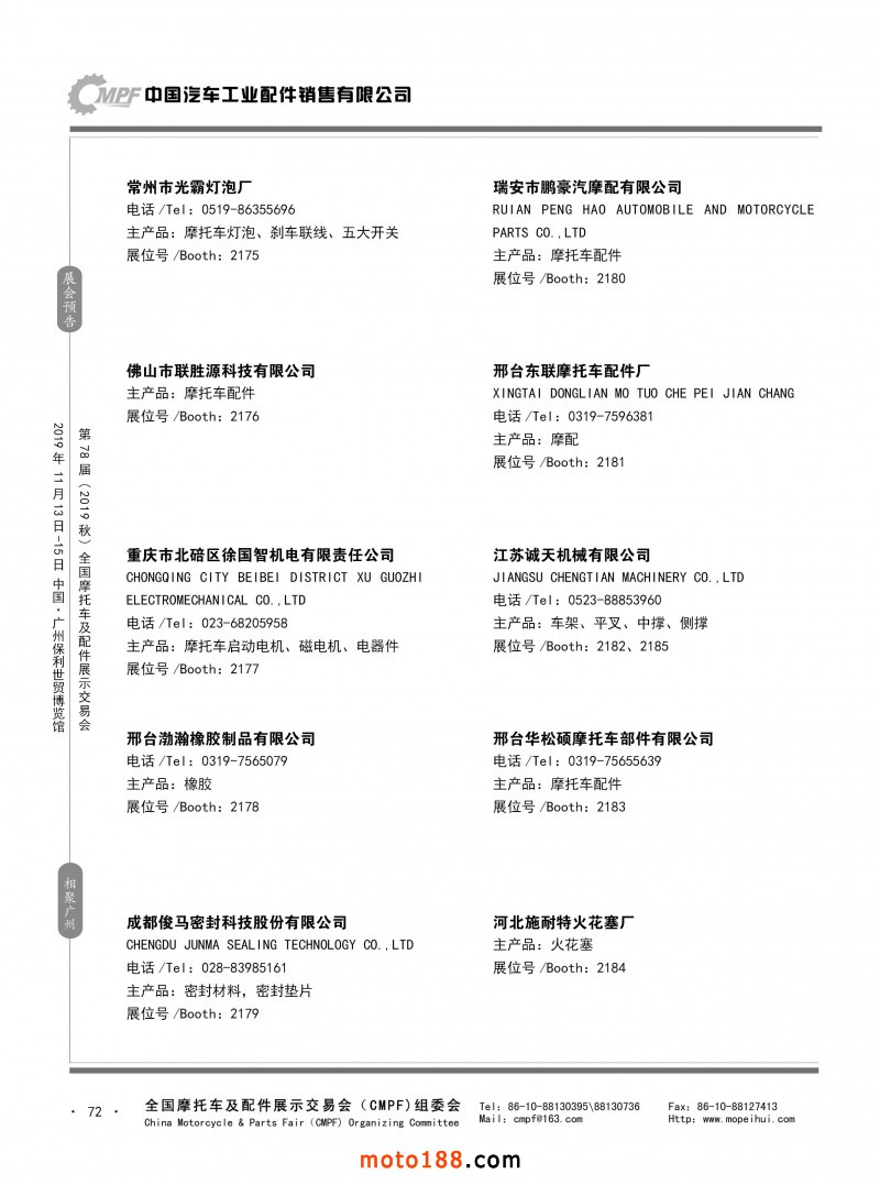 内72 第77届(2019春)全国摩托车及配件展示交易会-青岛站参展企业信息