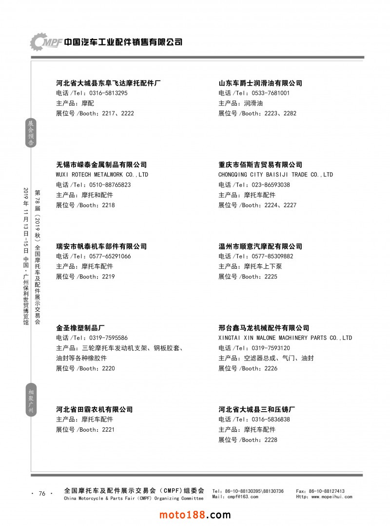 内76 第77届(2019春)全国摩托车及配件展示交易会-青岛站参展企业信息