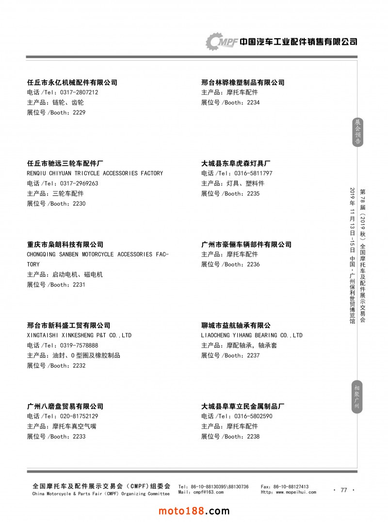 内77 第77届(2019春)全国摩托车及配件展示交易会-青岛站参展企业信息