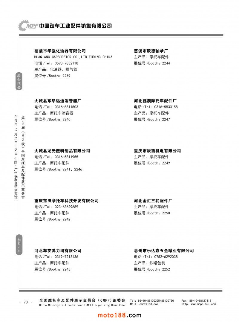 内78 第77届(2019春)全国摩托车及配件展示交易会-青岛站参展企业信息