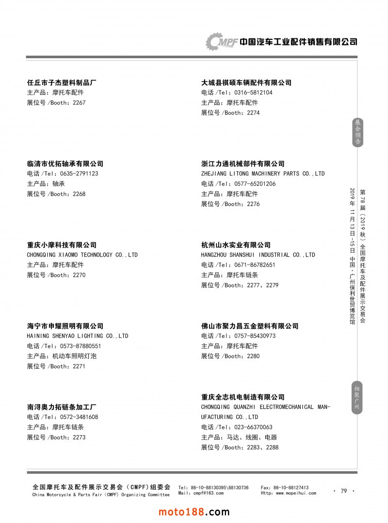 内79 第77届(2019春)全国摩托车及配件展示交易会-青岛站参展企业信息