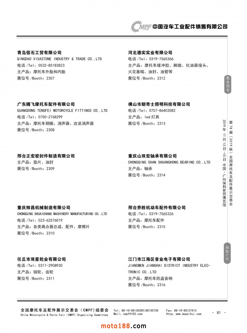 内81 第77届(2019春)全国摩托车及配件展示交易会-青岛站参展企业信息