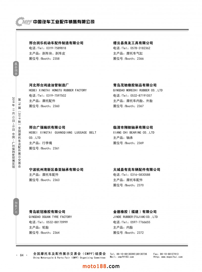 内84 第77届(2019春)全国摩托车及配件展示交易会-青岛站参展企业信息