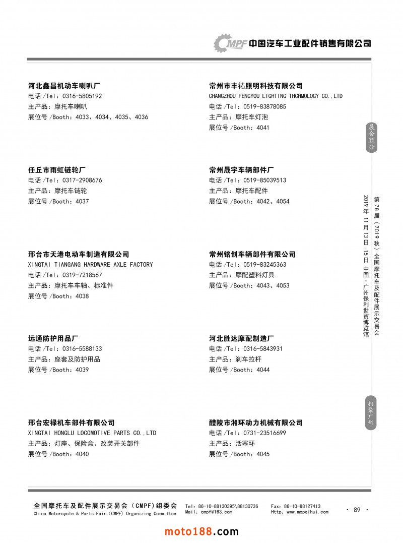 内89 第77届(2019春)全国摩托车及配件展示交易会-青岛站参展企业信息