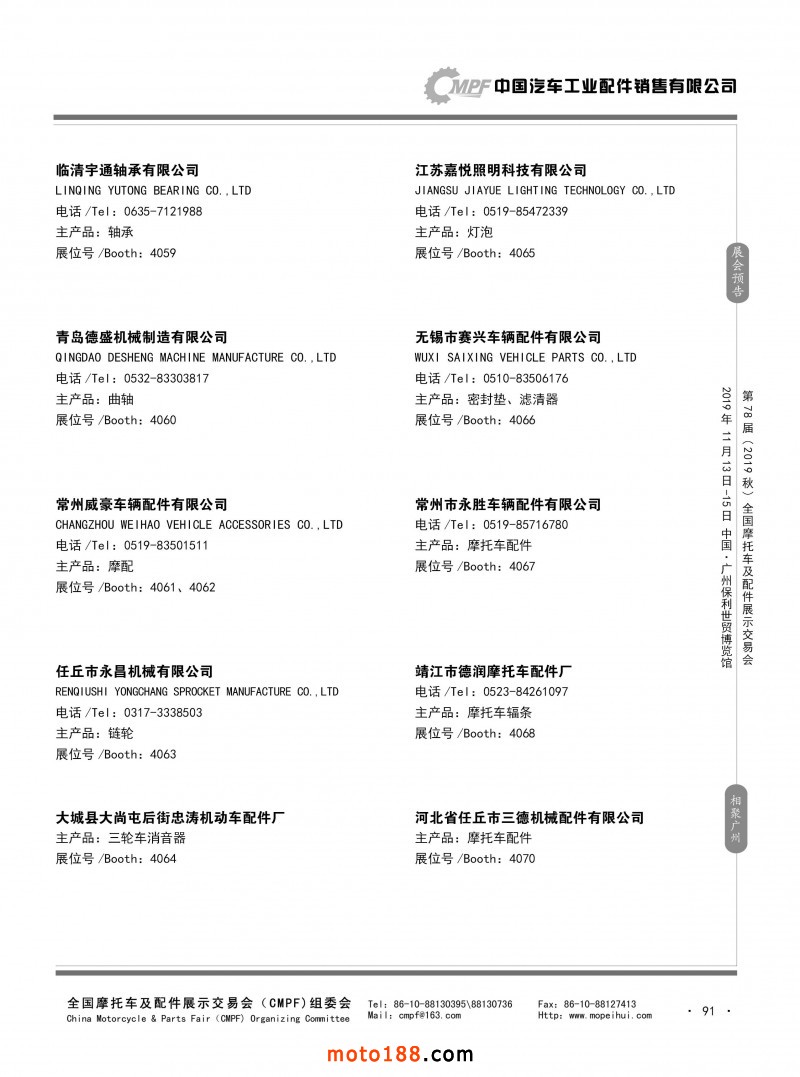 内91 第77届(2019春)全国摩托车及配件展示交易会-青岛站参展企业信息