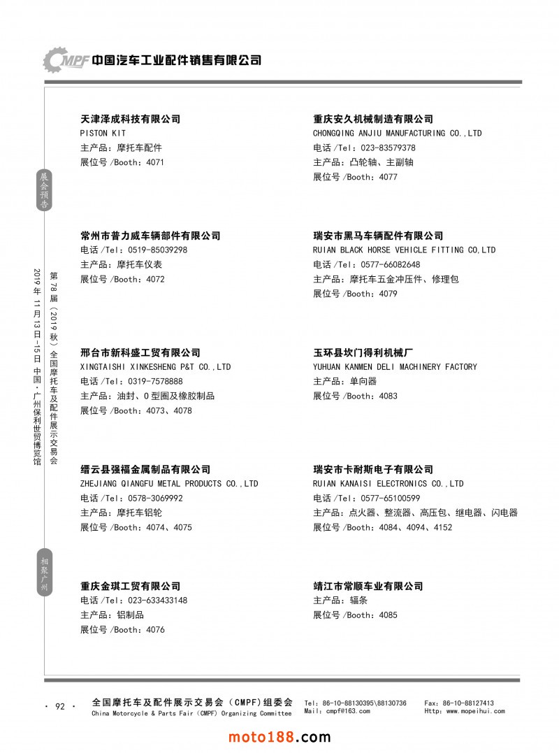 内92 第77届(2019春)全国摩托车及配件展示交易会-青岛站参展企业信息