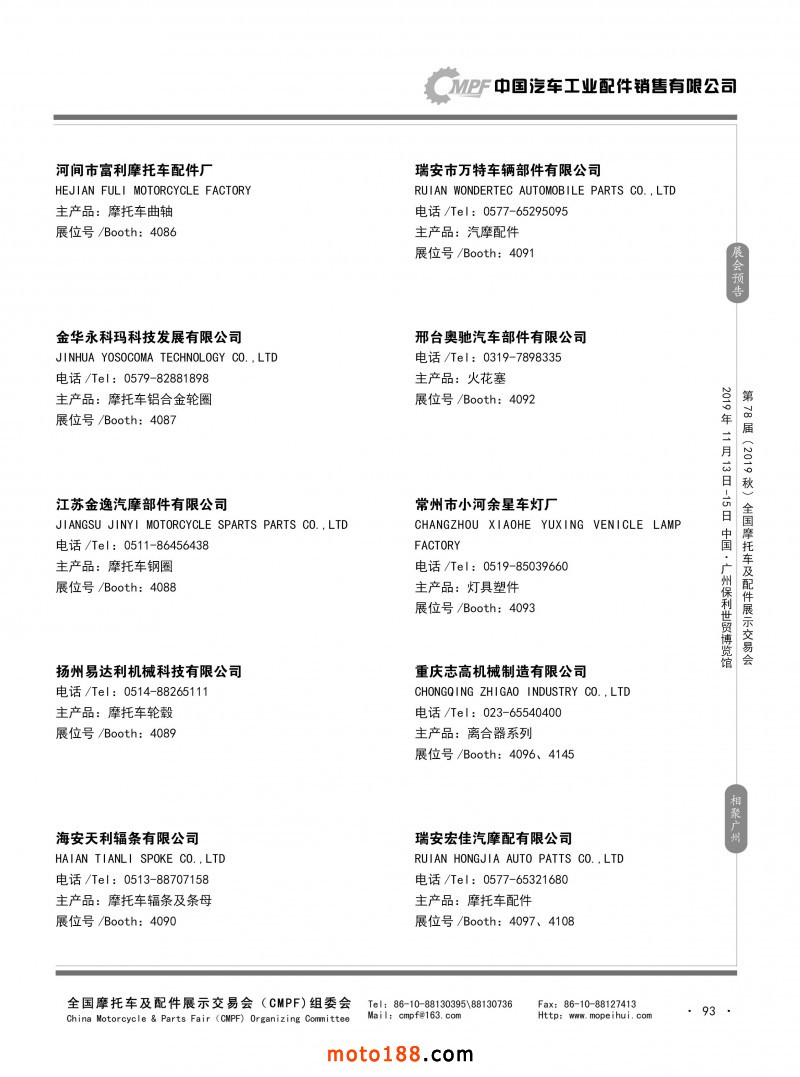 内93 第77届(2019春)全国摩托车及配件展示交易会-青岛站参展企业信息