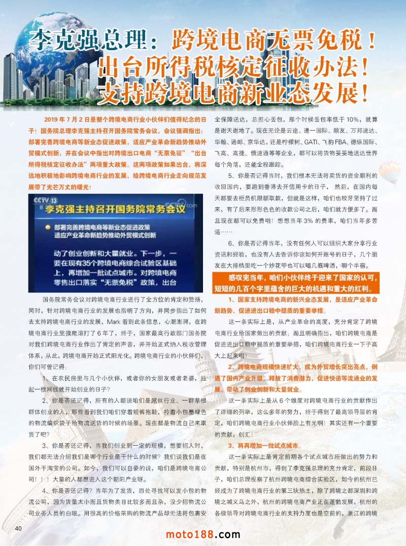 内40 李克强总理:跨境电商无票免税!出台所得税核定征收办法!