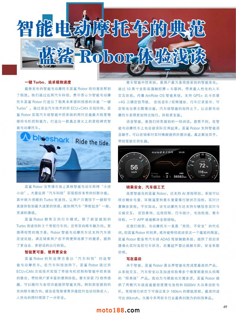内49 智能电动摩托车的典范 蓝鲨Robor体验浅谈