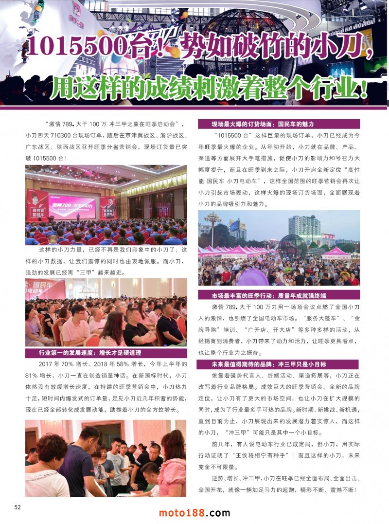 三年来由于我们的忧患意识,提早布局而打下了深厚的基础:行业绝无仅有的史诗般的巨型数据库《电动车大数据》,摩托车行业向电动车行业延伸的原《摩托车与配件》后更名为 《电摩与配件》杂志,使我们向这些行业进军如虎添翼,工作事半功倍,在摩配行业一骑绝尘,在电动车行业也被更多的企业所认可。