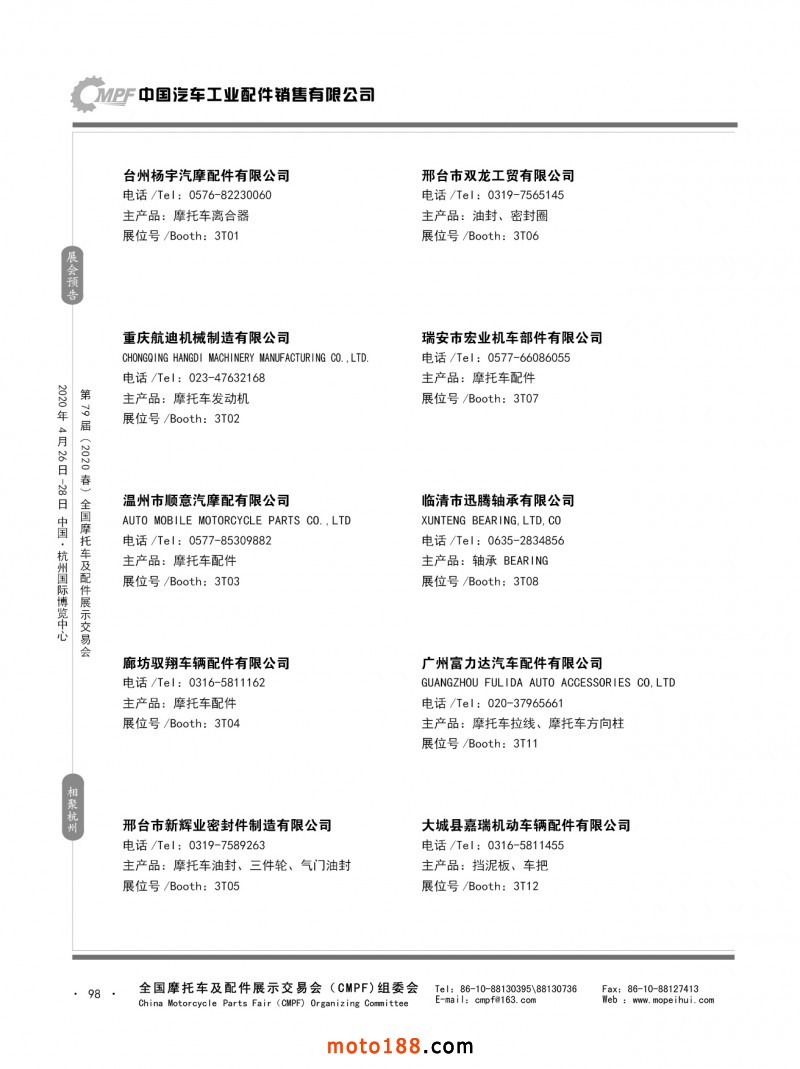 内79-172 第78届(2019秋)全国摩托车及配件展示交易会-广州站参展企业信息