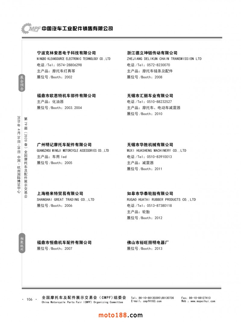 内79-172 第78届(2019秋)全国摩托车及配件展示交易会-广州站参展企业信息
