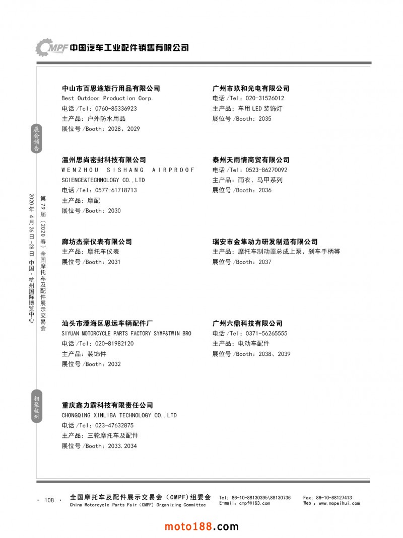内79-172 第78届(2019秋)全国摩托车及配件展示交易会-广州站参展企业信息