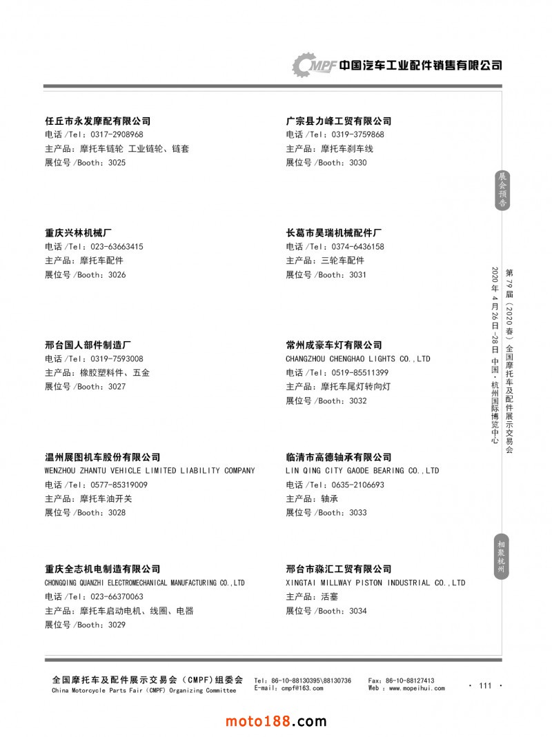 内79-172 第78届(2019秋)全国摩托车及配件展示交易会-广州站参展企业信息