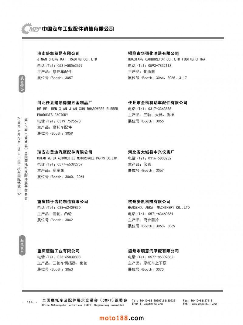 内79-172 第78届(2019秋)全国摩托车及配件展示交易会-广州站参展企业信息