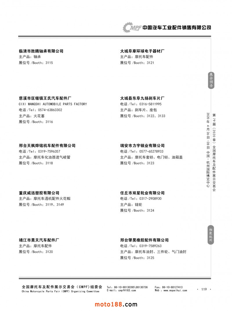内79-172 第78届(2019秋)全国摩托车及配件展示交易会-广州站参展企业信息