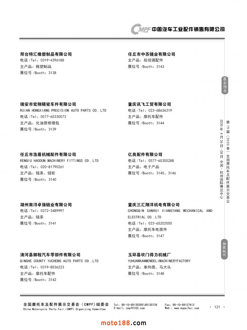 内79-172 第78届(2019秋)全国摩托车及配件展示交易会-广州站参展企业信息