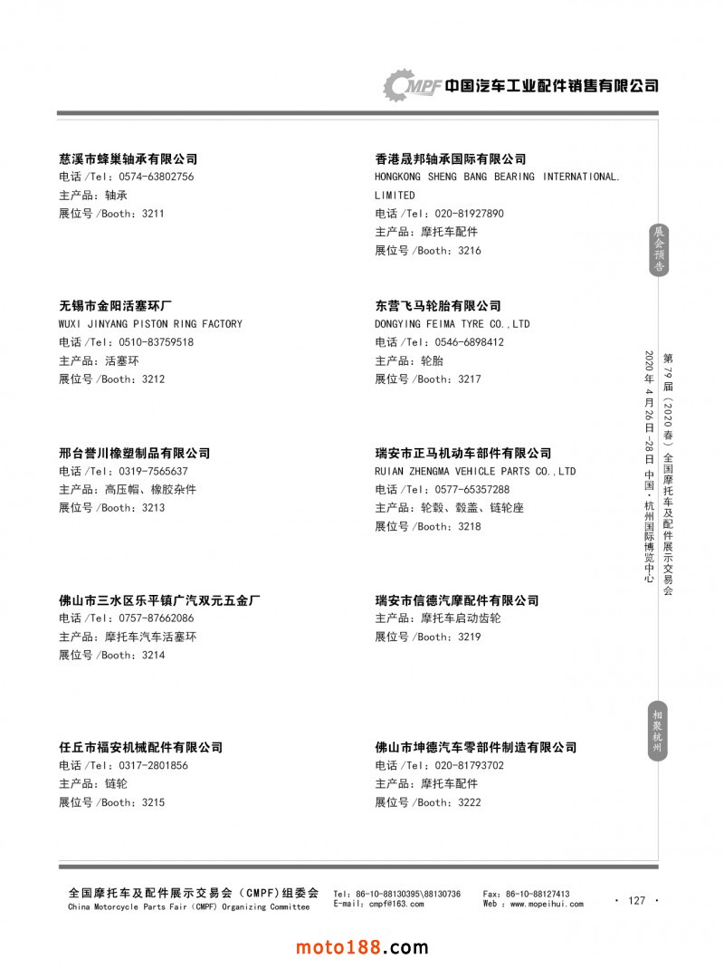 内79-172 第78届(2019秋)全国摩托车及配件展示交易会-广州站参展企业信息