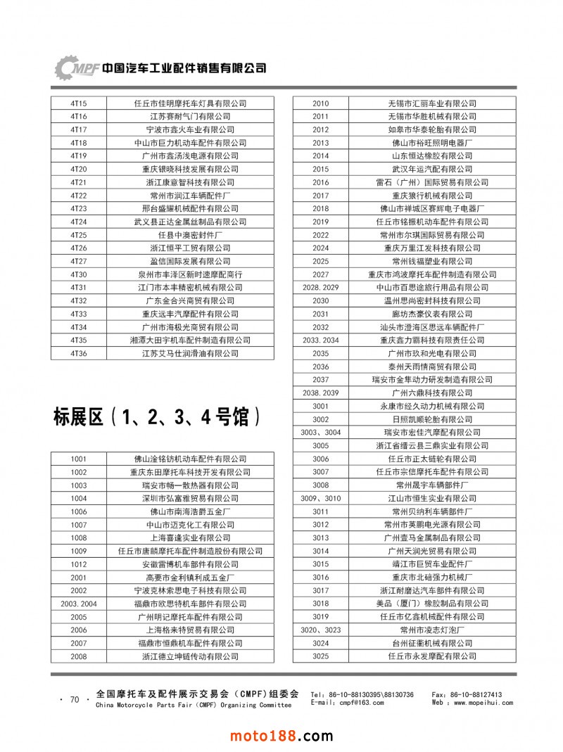 内67-78 第78届(2019秋)全国摩托车及配件展示交易会-广州站参展单位名录