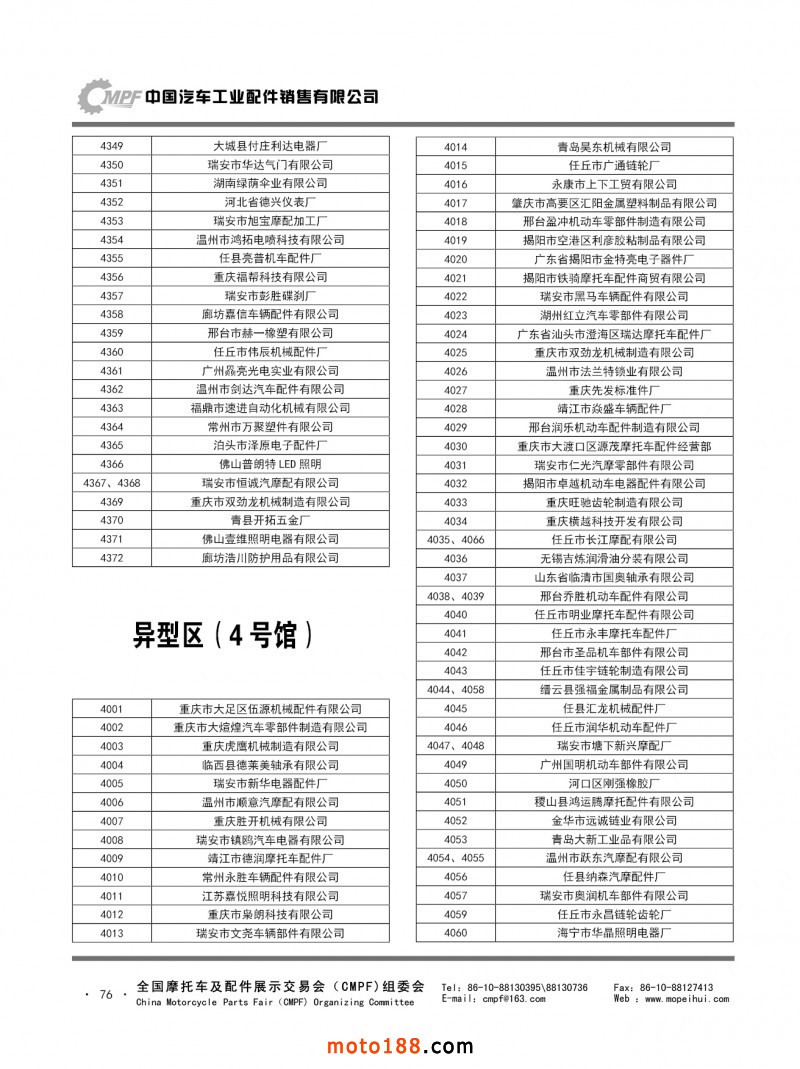 内67-78 第78届(2019秋)全国摩托车及配件展示交易会-广州站参展单位名录