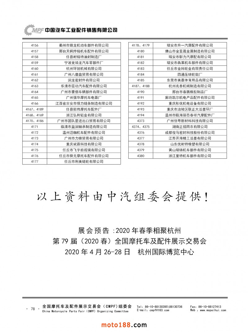 内67-78 第78届(2019秋)全国摩托车及配件展示交易会-广州站参展单位名录