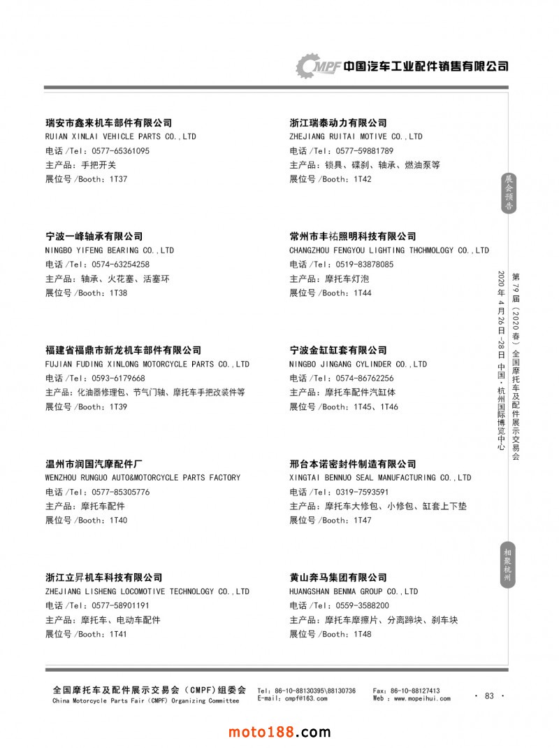 内79-172 第78届(2019秋)全国摩托车及配件展示交易会-广州站参展企业信息